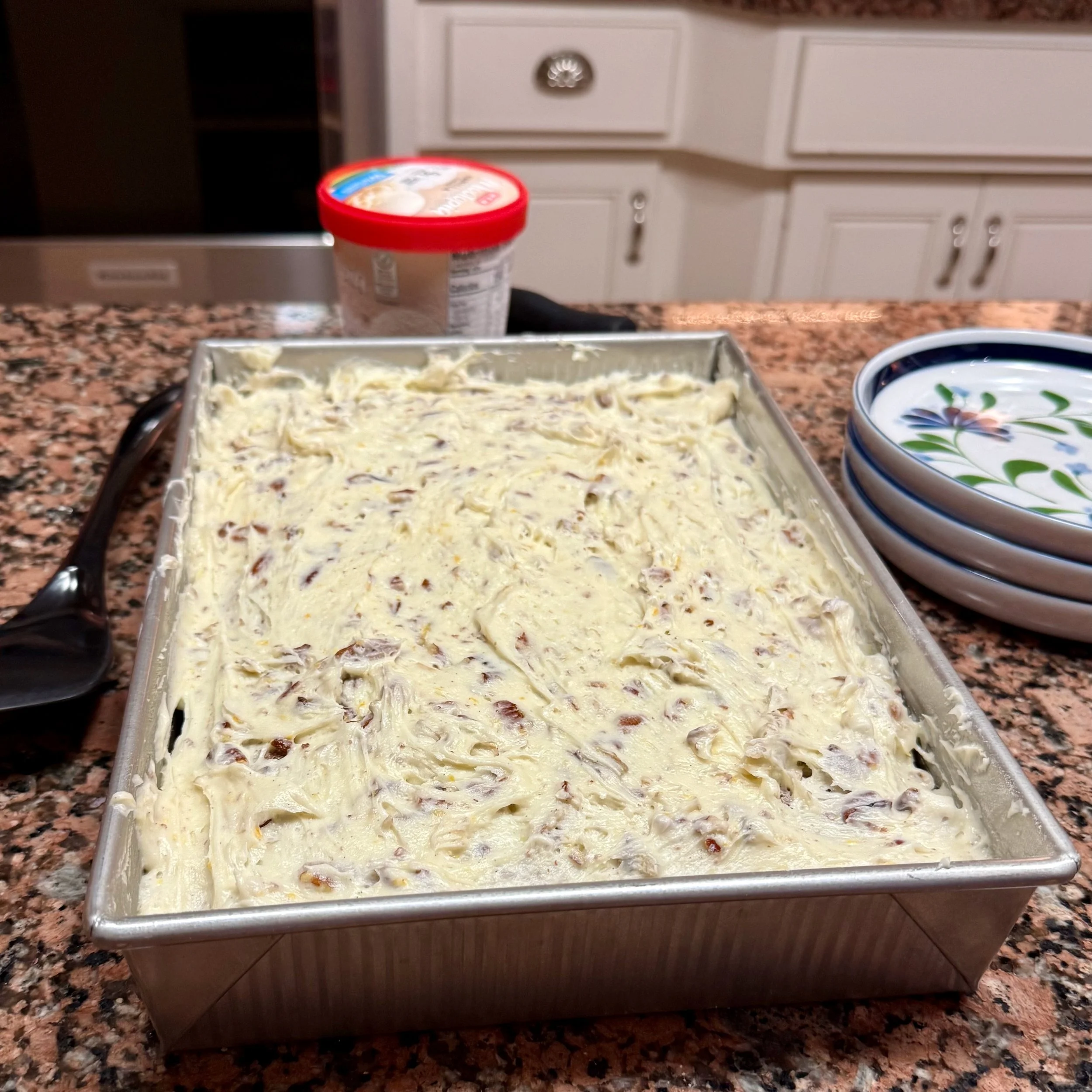 No, it's not some fancy secret family recipe, or even that much of a labor of love. My mom simply followed all the steps for Italian Cream Cake. Like, the actual steps. As in, all of them. Including the annoying ones.